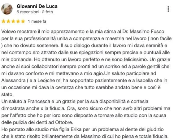 "Informazione sanitaria ai sensi della legge 248/2006 e 145/2018. Dir. San. Dott. Fusco Massimo iscritto all'Ordine Provinciale dei Medici Chirurghi e degli Odontoiatri di Fermo - Iscrizione N.54”